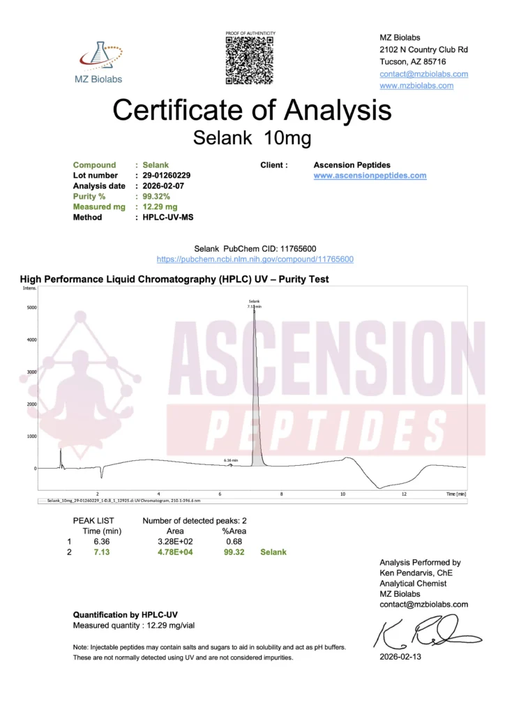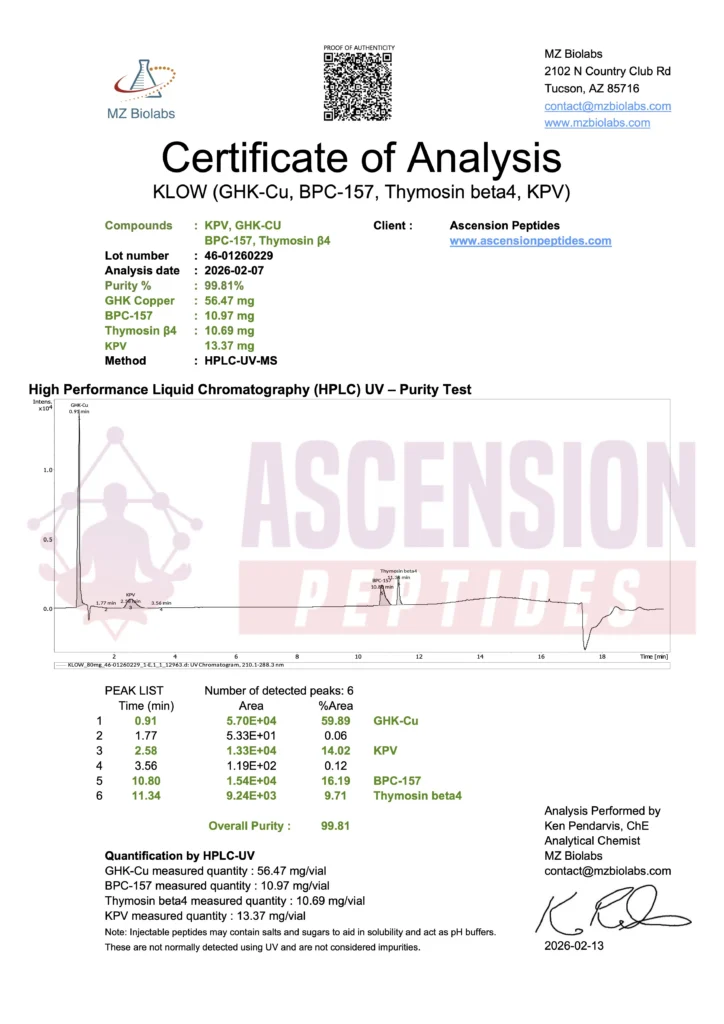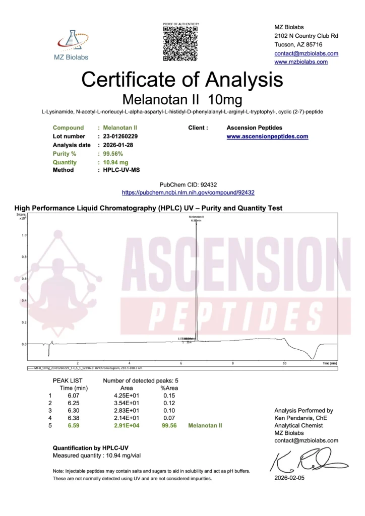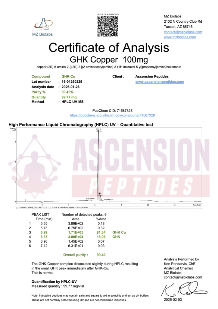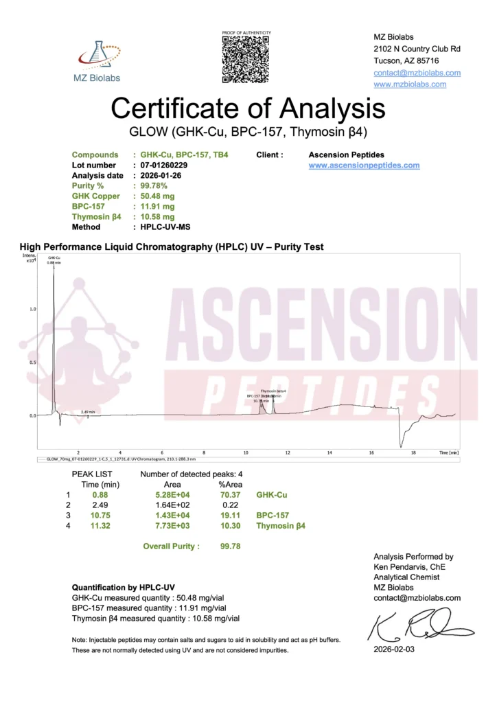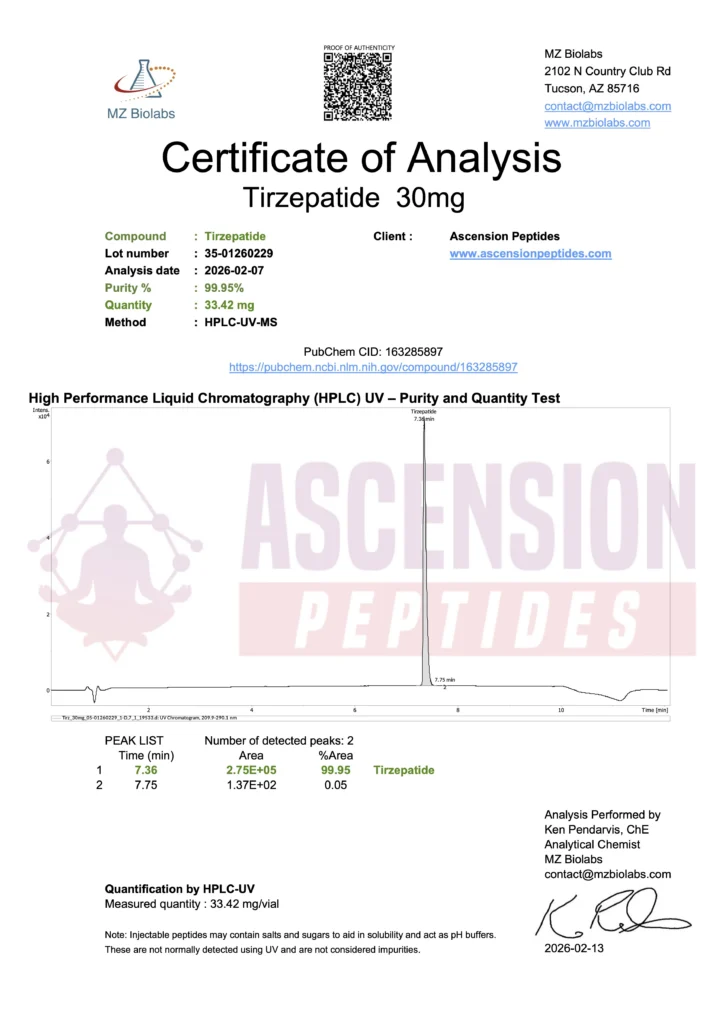 Ascension Peptides tests all products with an independent third-party lab located in the United States. All Certificates of Analysis are displayed here after testing is complete.