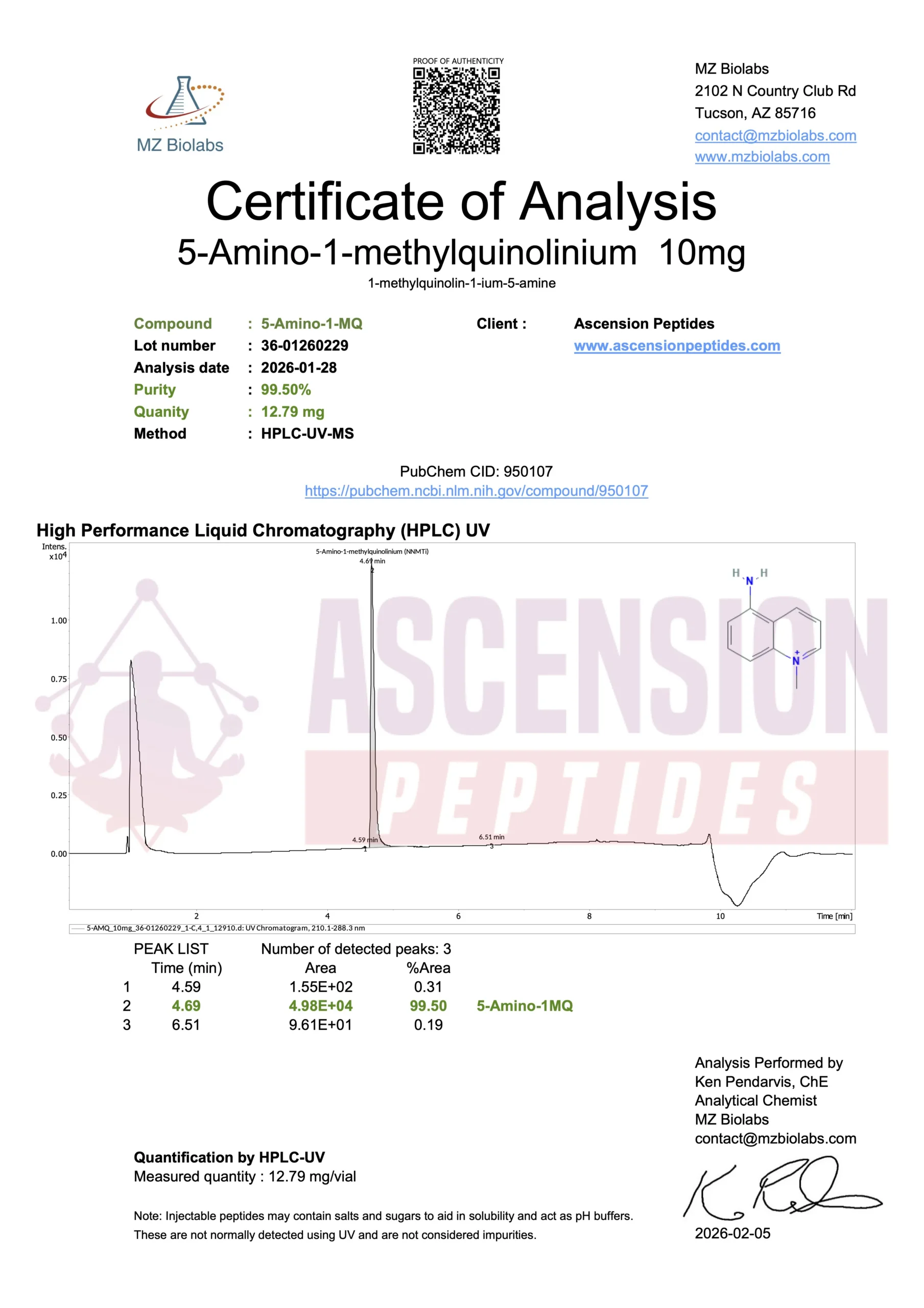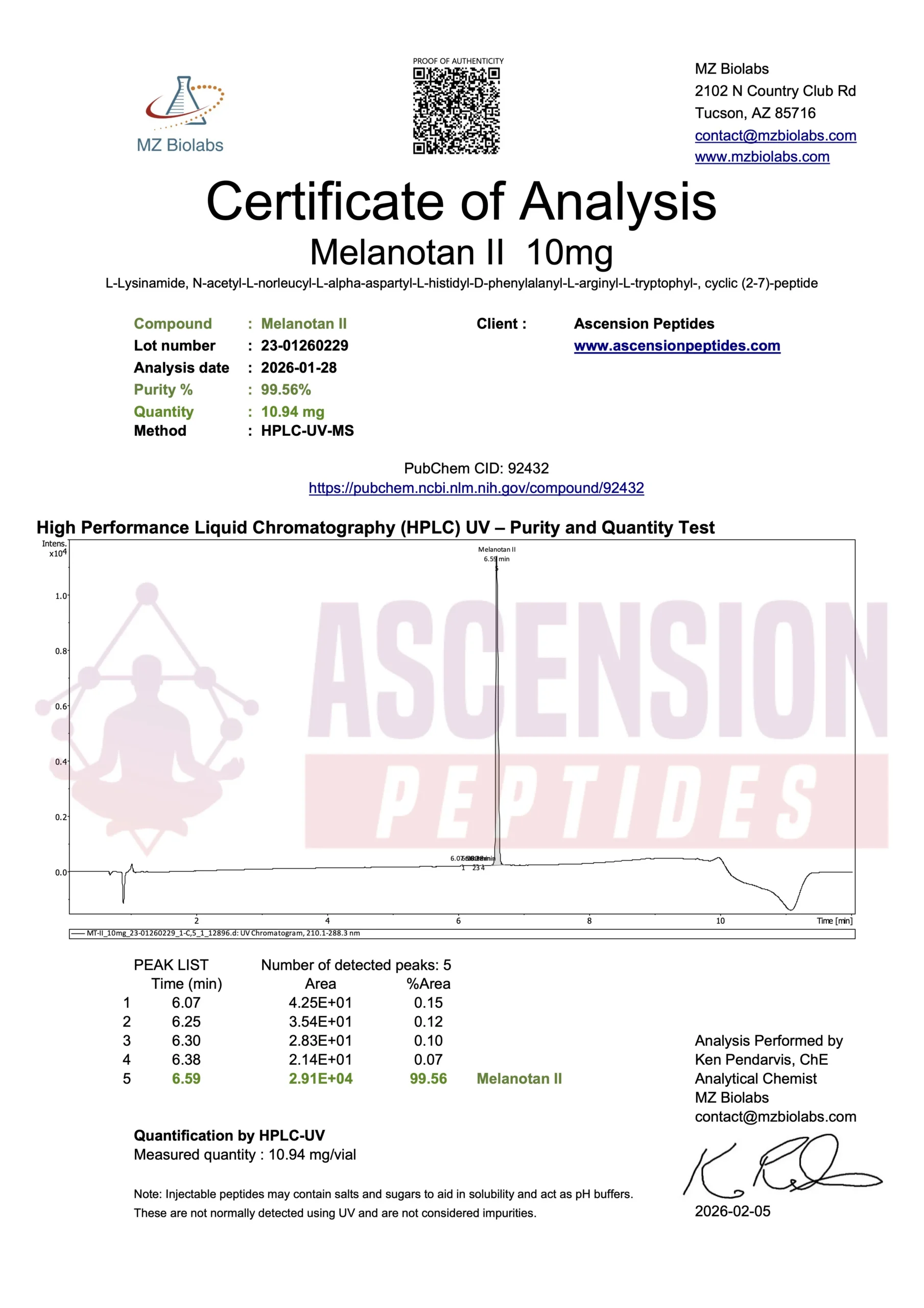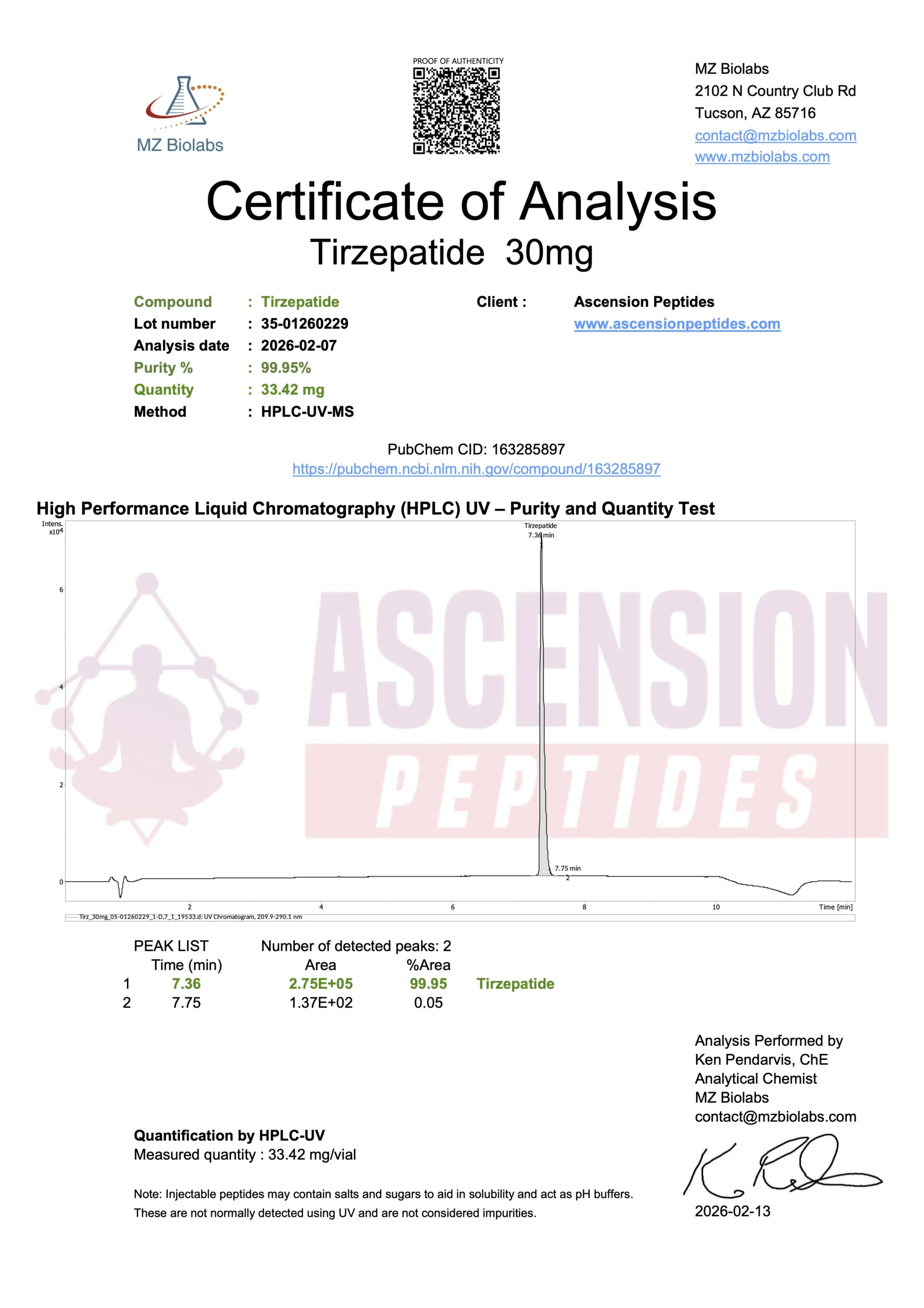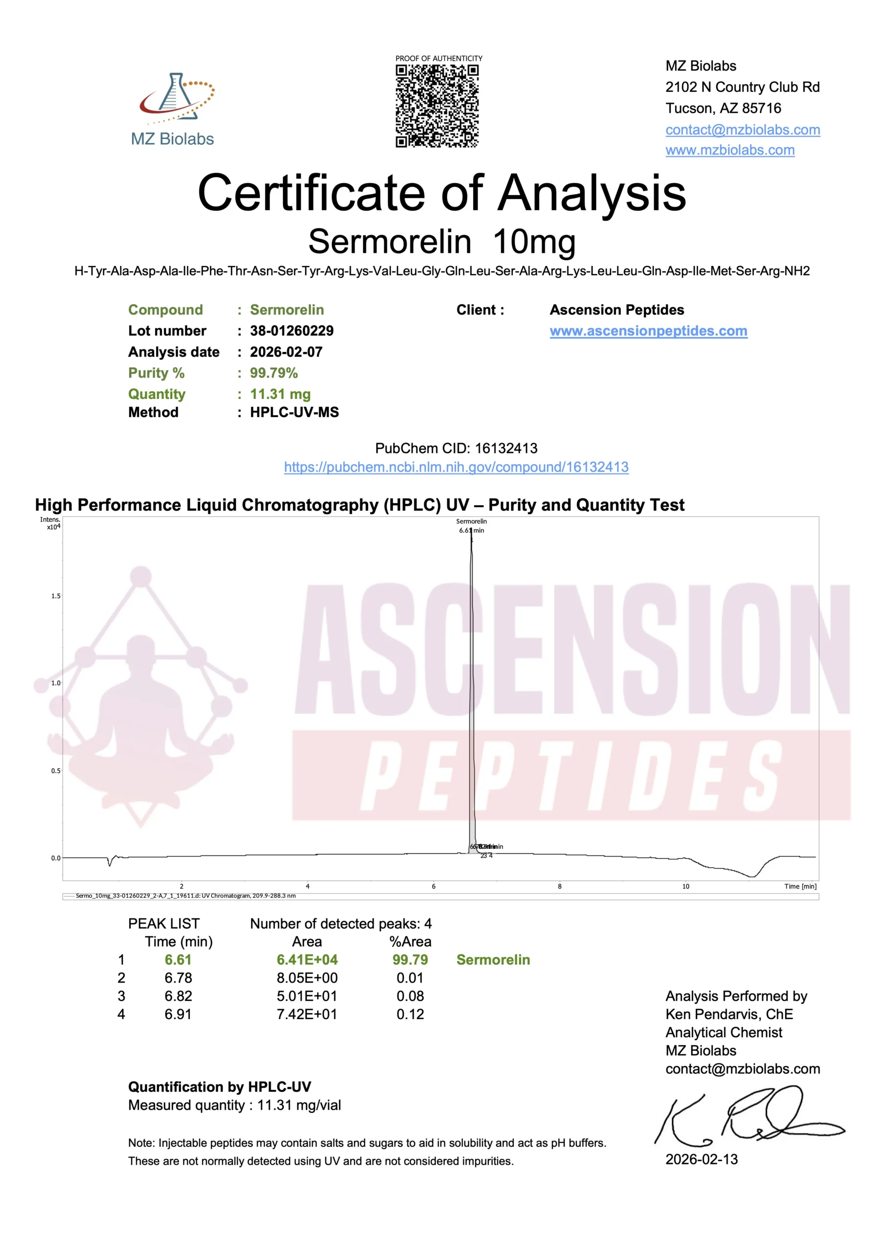 Ascension Peptides tests all products with an independent third-party lab located in the United States. All Certificates of Analysis are displayed here after testing is complete.