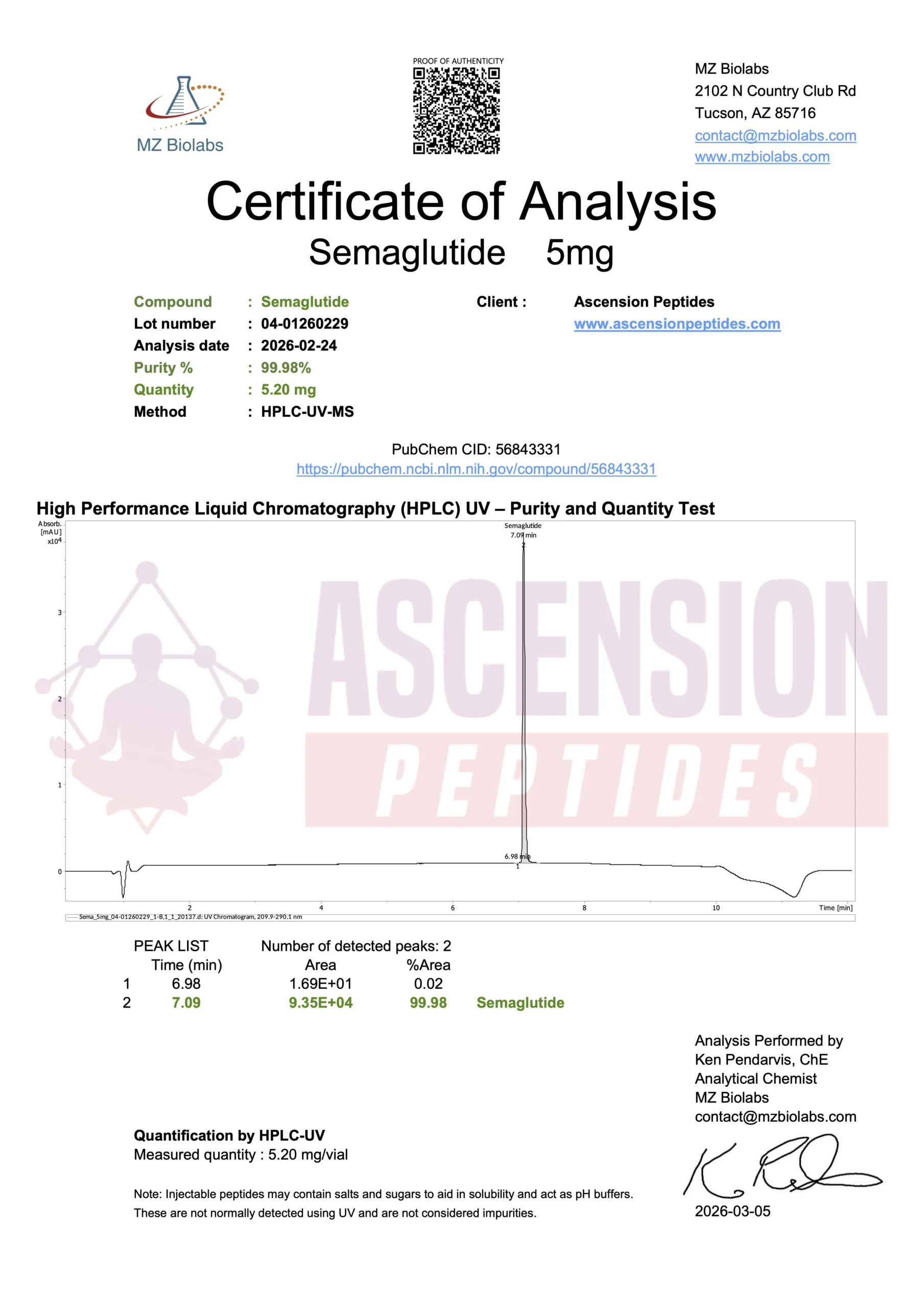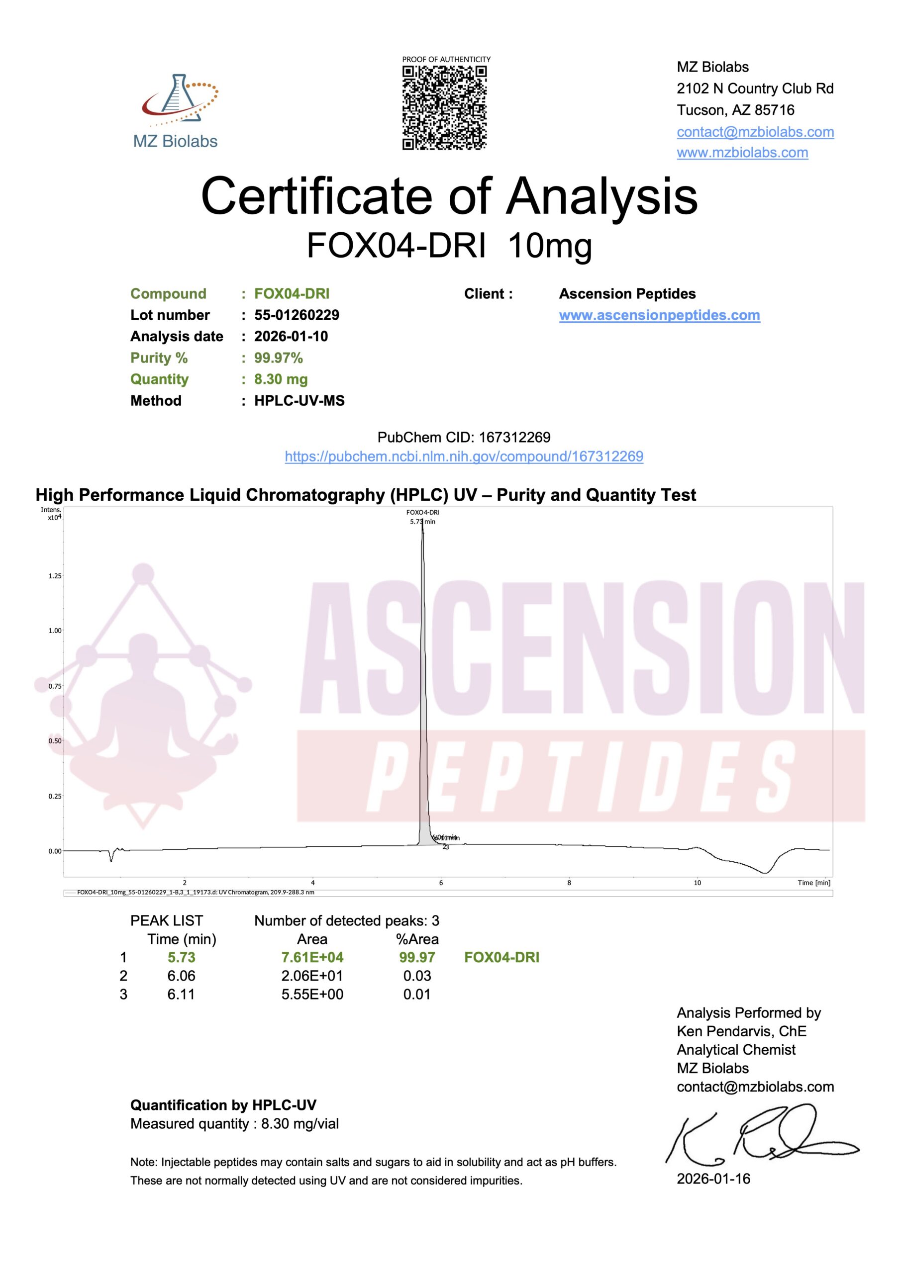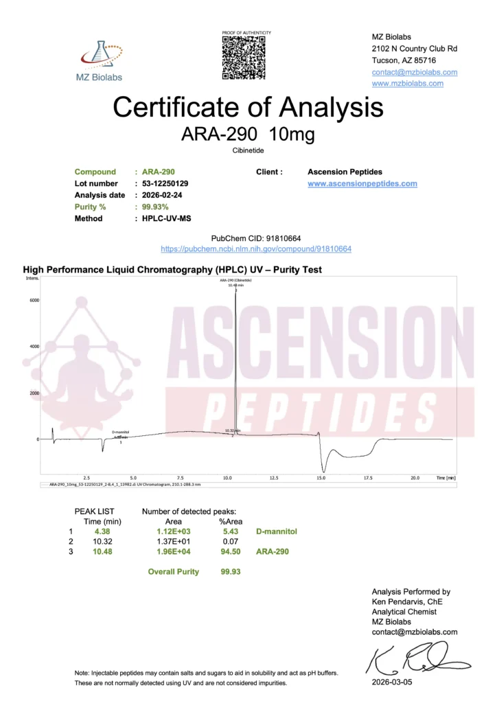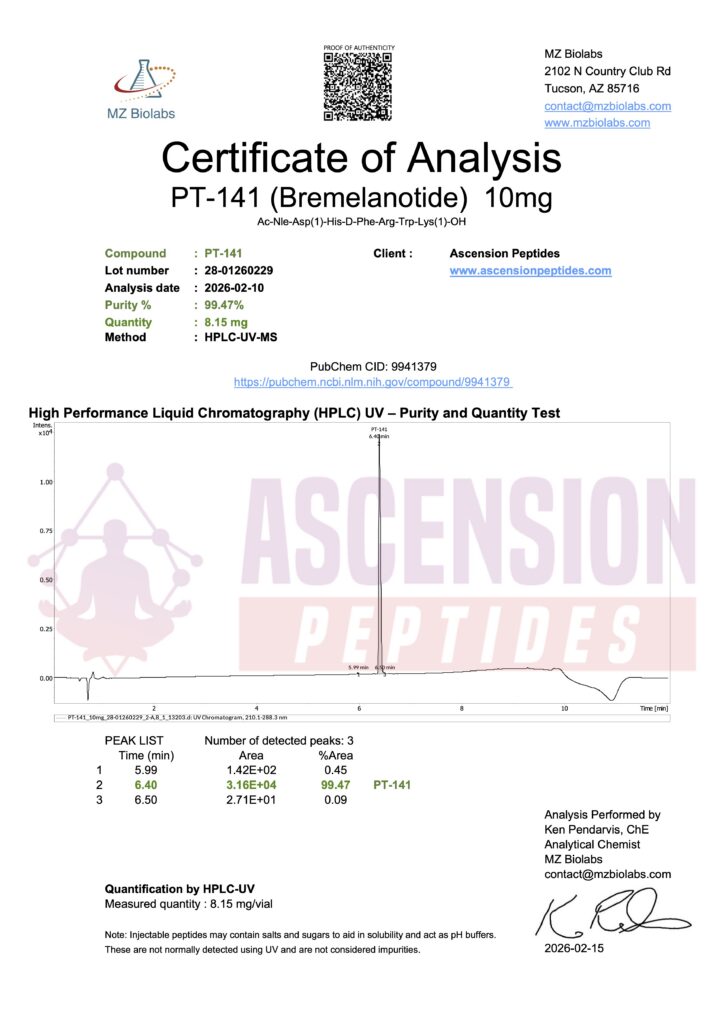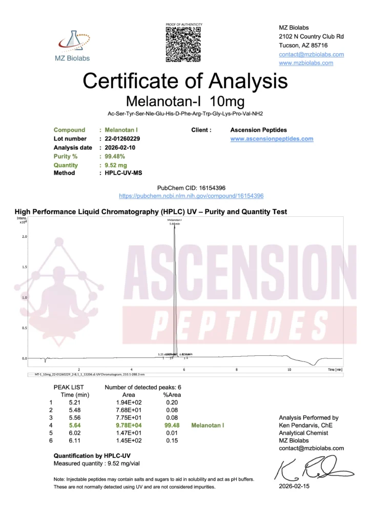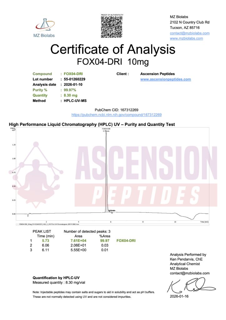 Ascension Peptides tests all products with an independent third-party lab located in the United States. All Certificates of Analysis are displayed here after testing is complete.