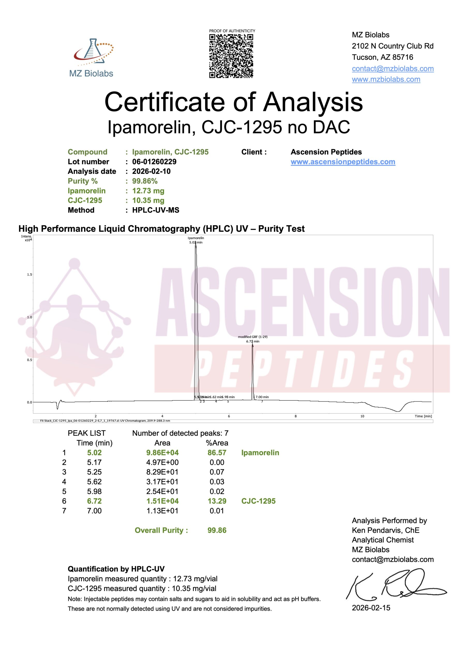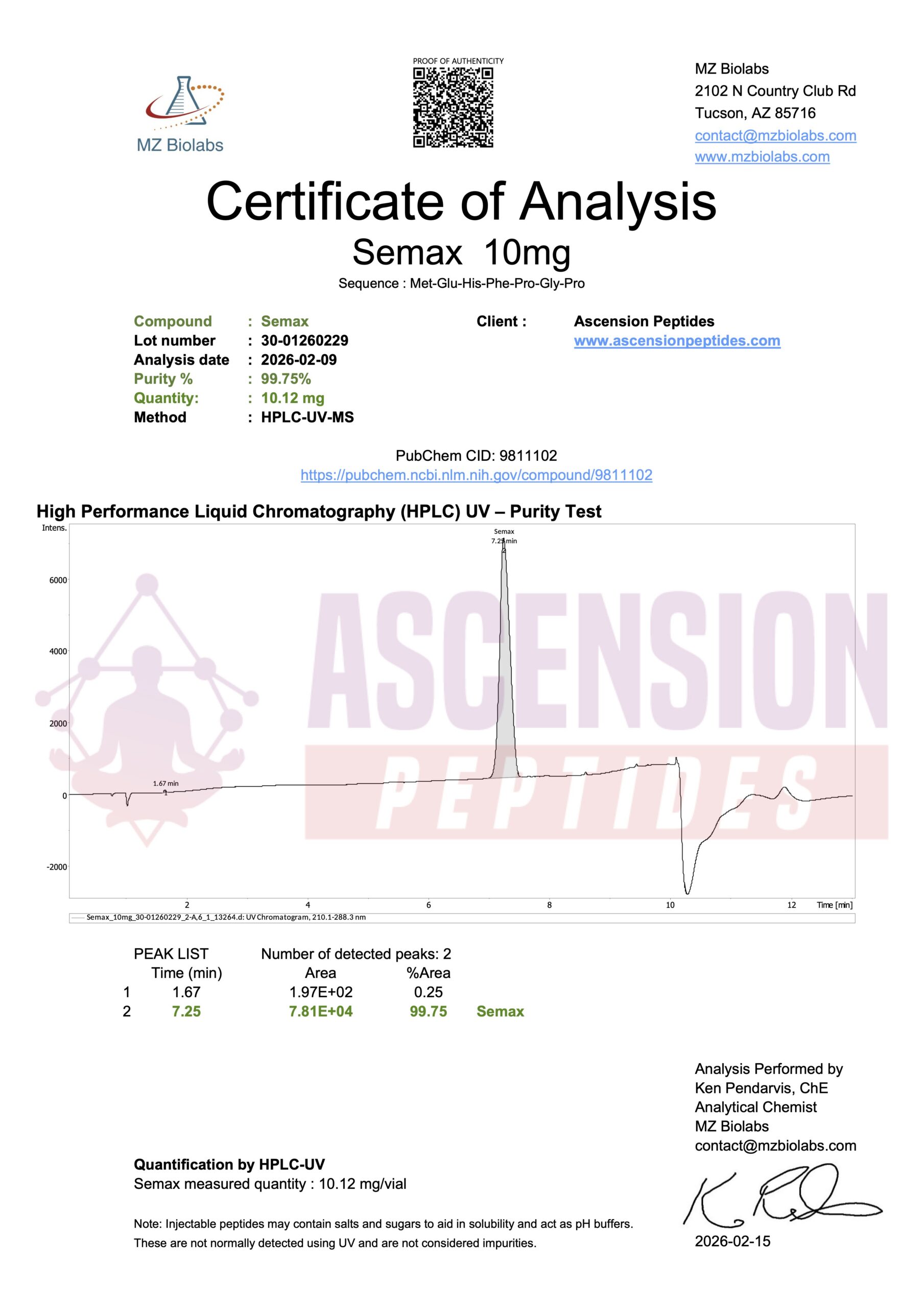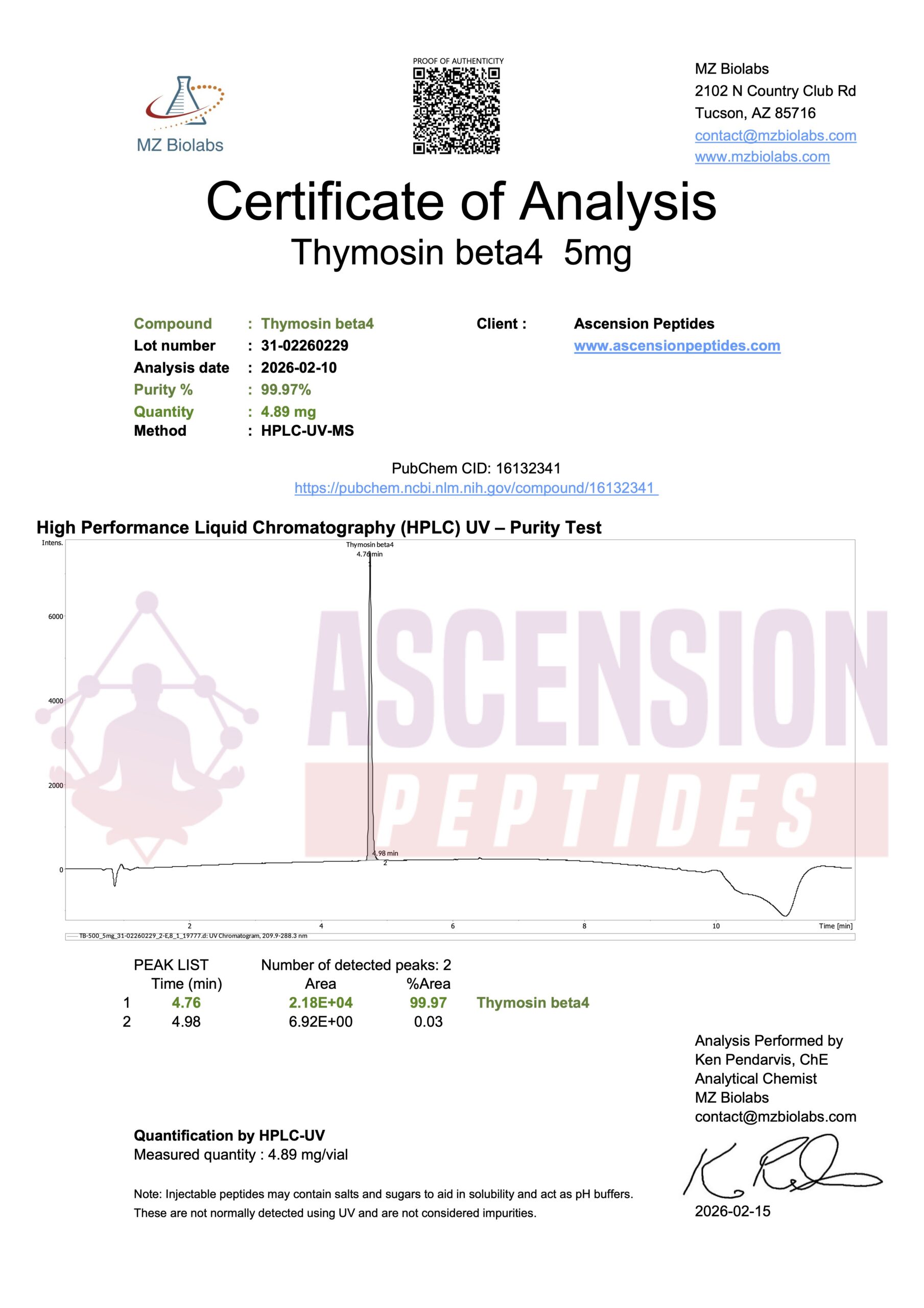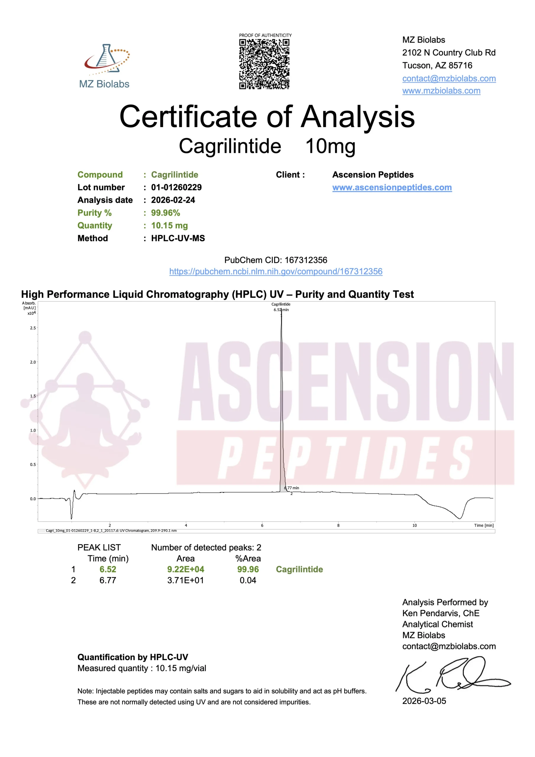 Ascension Peptides tests all products with an independent third-party lab located in the United States. All Certificates of Analysis are displayed here after testing is complete.