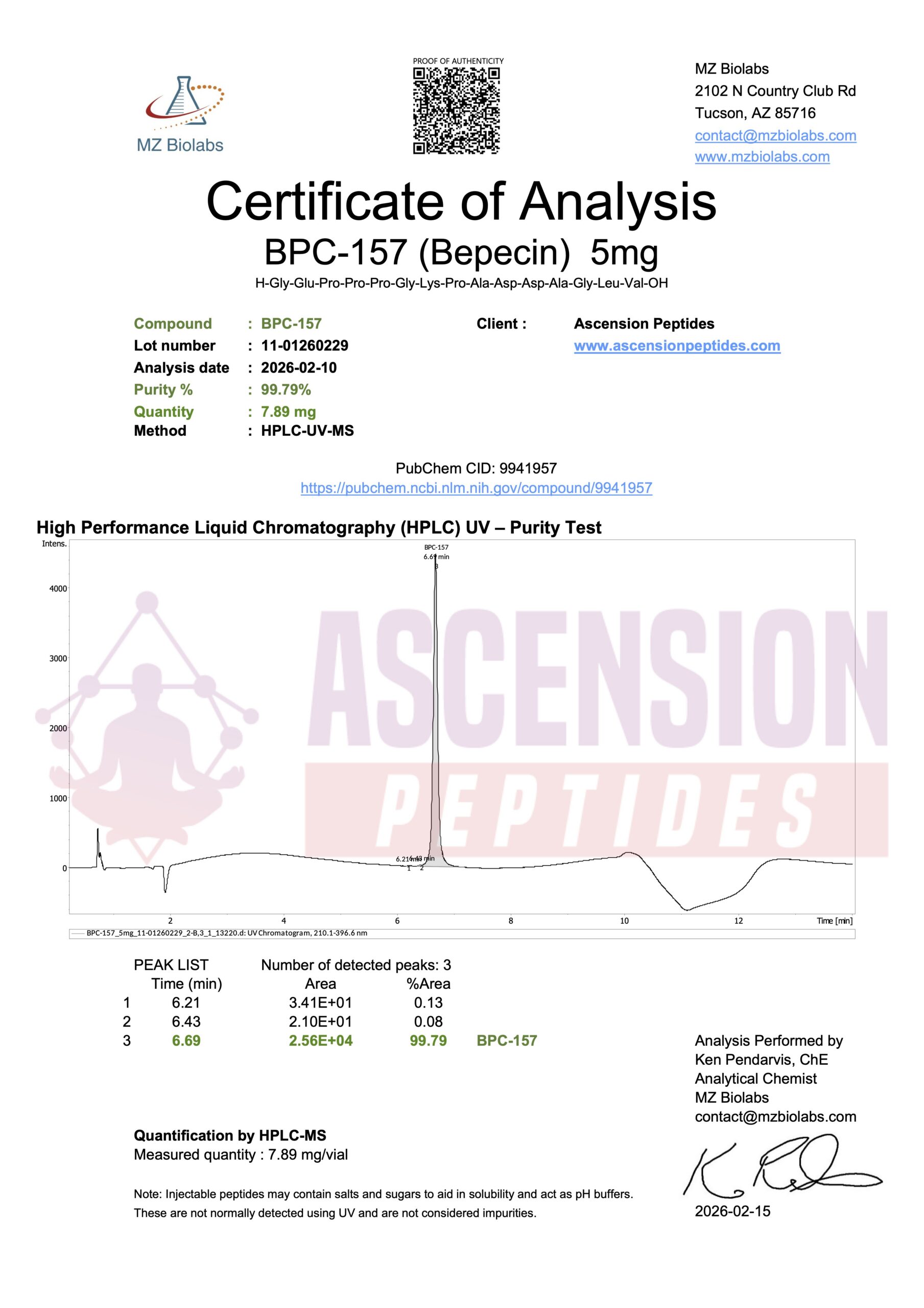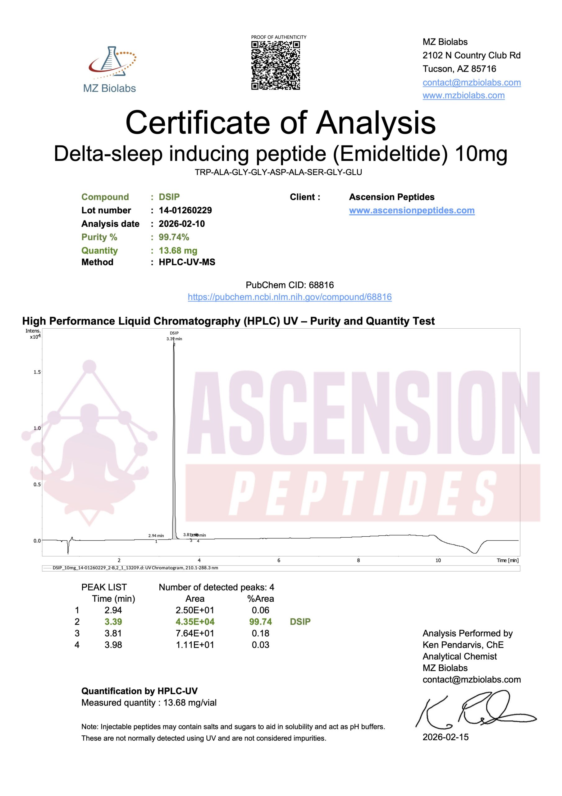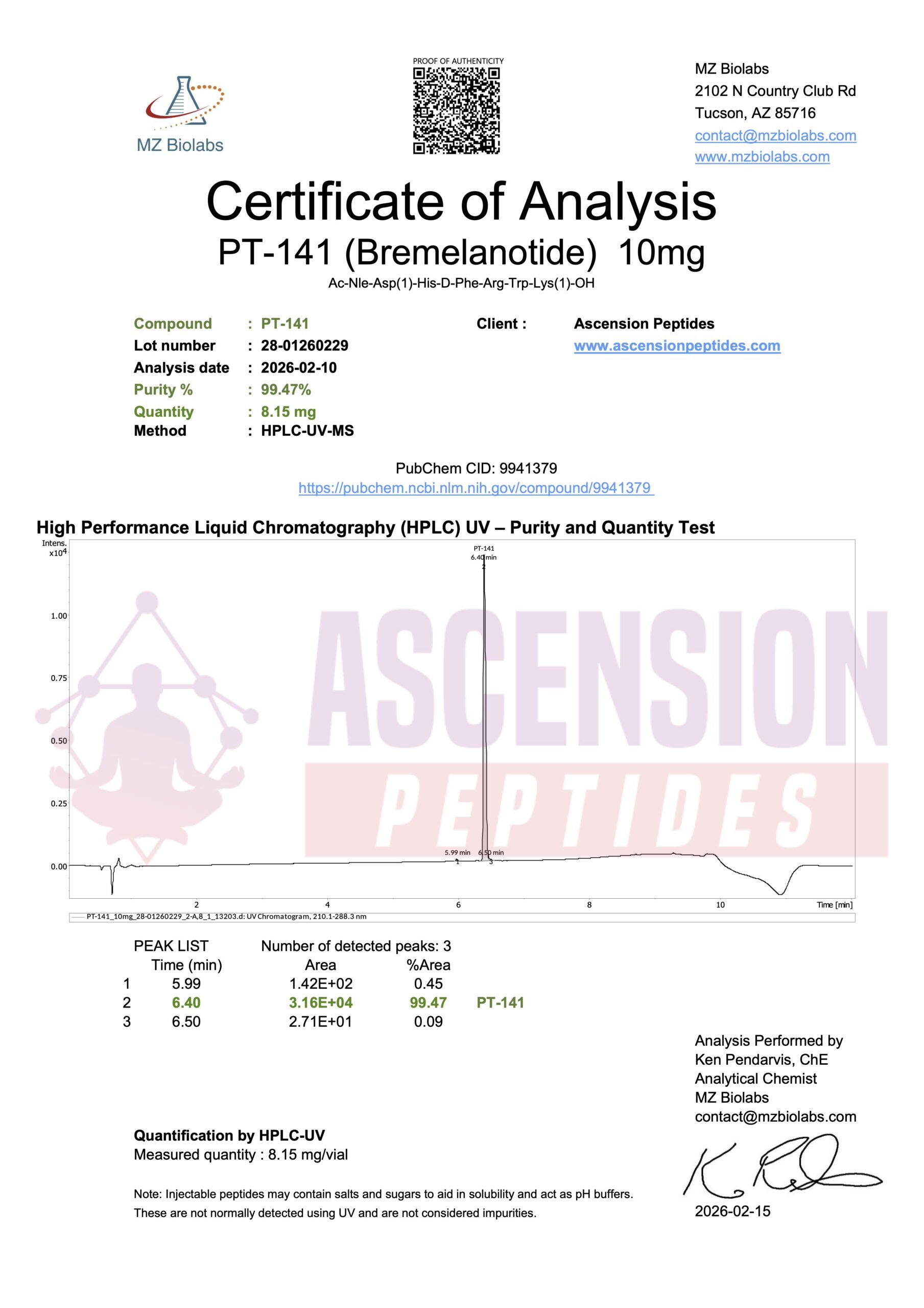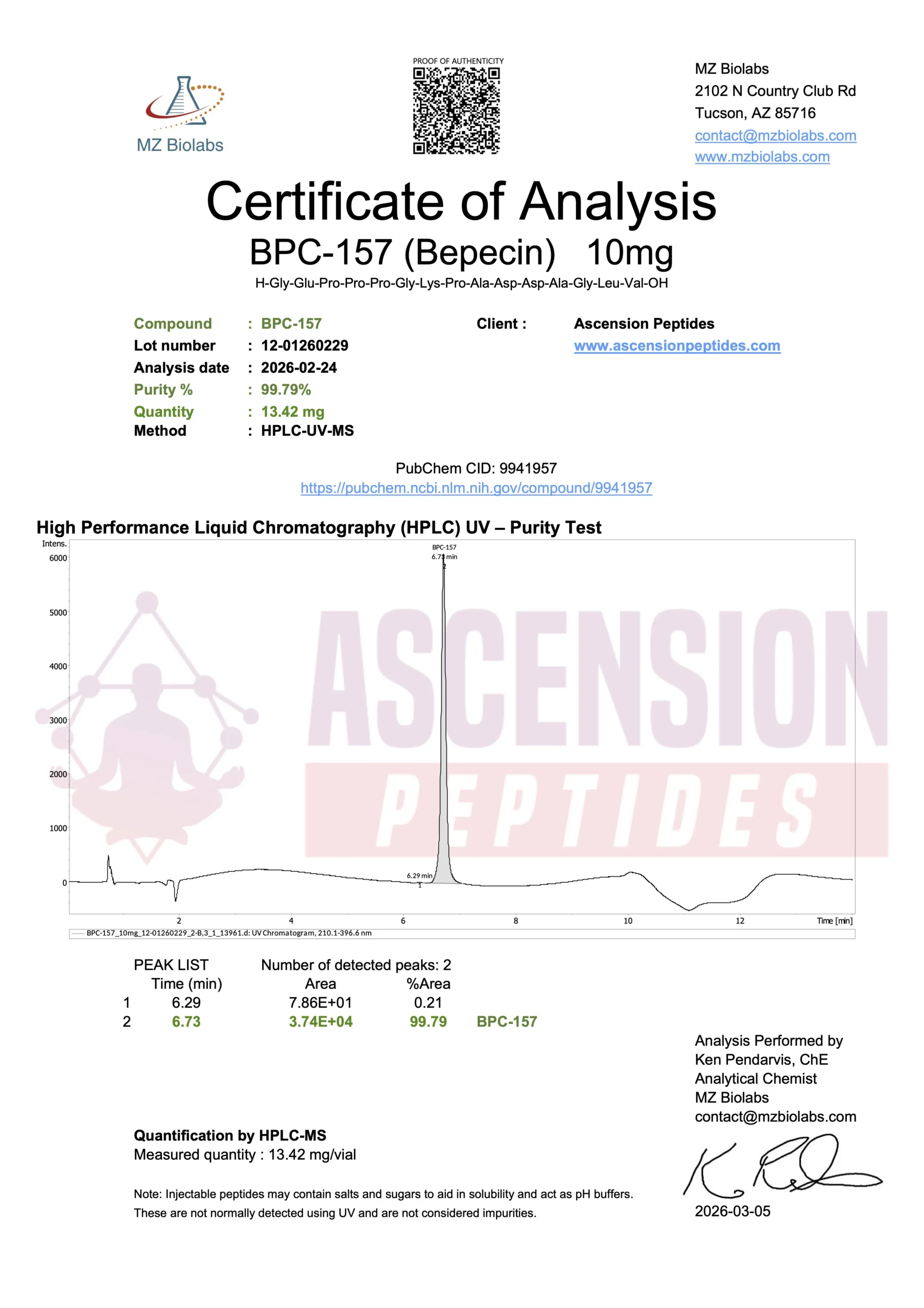 Ascension Peptides tests all products with an independent third-party lab located in the United States. All Certificates of Analysis are displayed here after testing is complete.